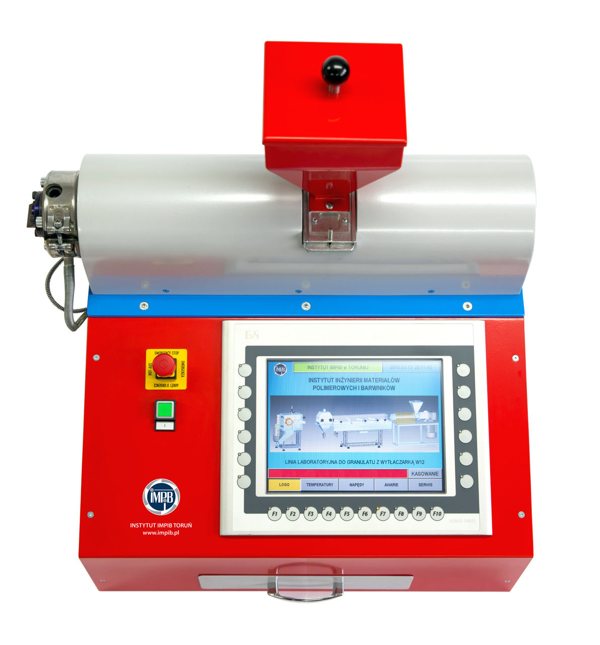 The machine can be equipped with analog or computer-based control with a touch panel, enabling, among other functions: timed heater start-up, drive and screw speed control, synchronization of peripheral equipment, melt pressure and temperature measurement, safety interlock if the set temperature has not been reached, fault logging, and process data archiving.