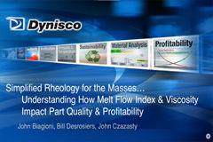 Attendees will address issues such as the need to test polymers; the correlation of lab values to online production; and the impact of melt flow index and viscosity on part quality and profitability.